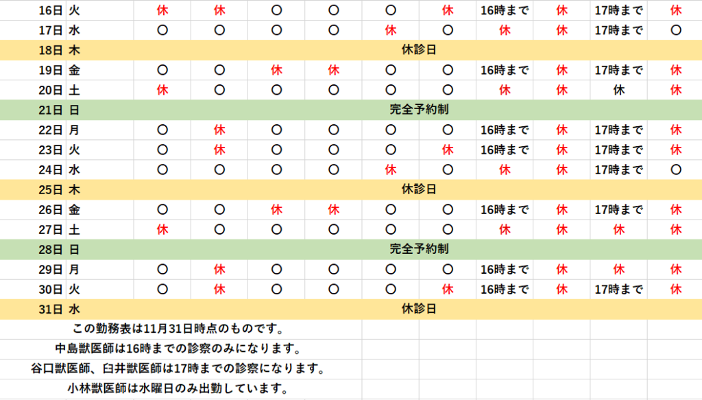 獣医師勤務表