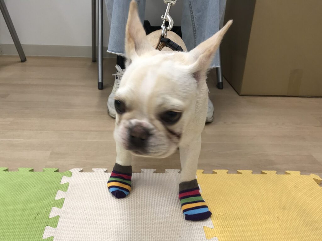 初めての靴下にみんな戸惑うと思っていましたが、意外とすんなり受け入れてくれる子が多かったです🧦