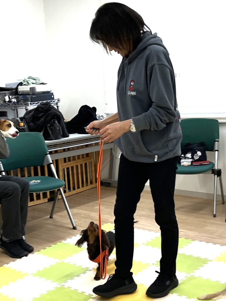 お散歩を想定して隣に並んで歩く練習や、リードが外れてしまったときの”待って”の練習